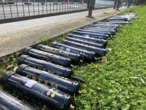 Cartouches de protoxyde d’azote dans un square parisien. Leur nombre en dit long sur le niveau de consommation de certains. (photo : Olivier Guichardaz)